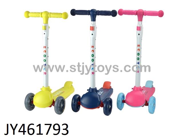 Three-wheeled scooters with lights, mixed in multiple colors
