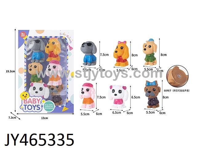 Vinyl cute pet dog with baby whistle (1 box of 6 pets)