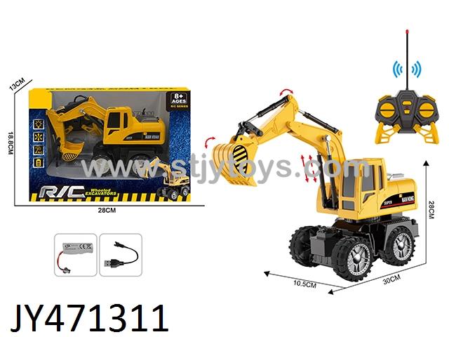 6-channel wheeled excavator/forward/backward/Left turn/right turn/Light/mechanical arm: digging action/pushing arm action