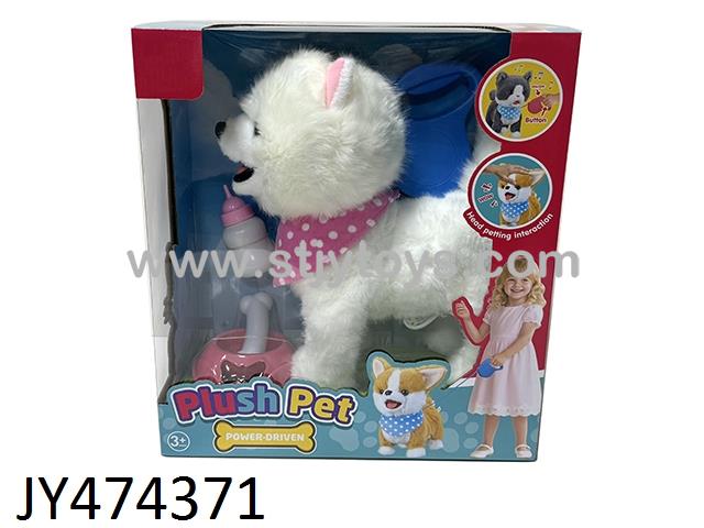 Rechargeable electric leash plush licking dog (Long press the leash switch to record and learn to speak - can sing and dance)