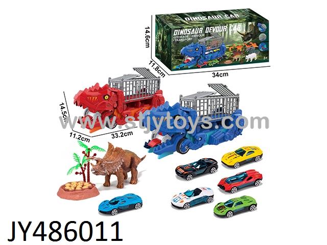 Dinosaur Devouring Transport Vehicle (with 3 alloy sliding vehicles (one soft rubber Triceratops, grass, egg trough, one DIY sticker)