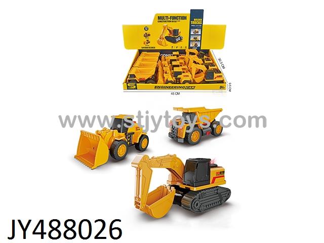 1:24 Small Dump Truck & Bulldozer & Excavator Set (Rolling & Lights & Music), 12 per Display Box