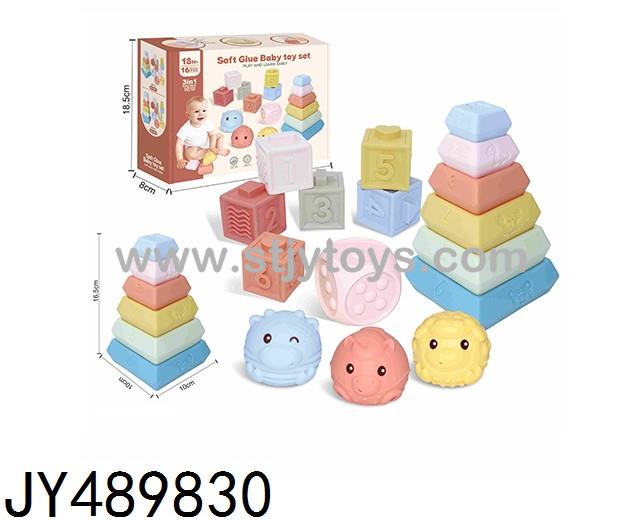 A 16-piece soft rubber Jenga toy set