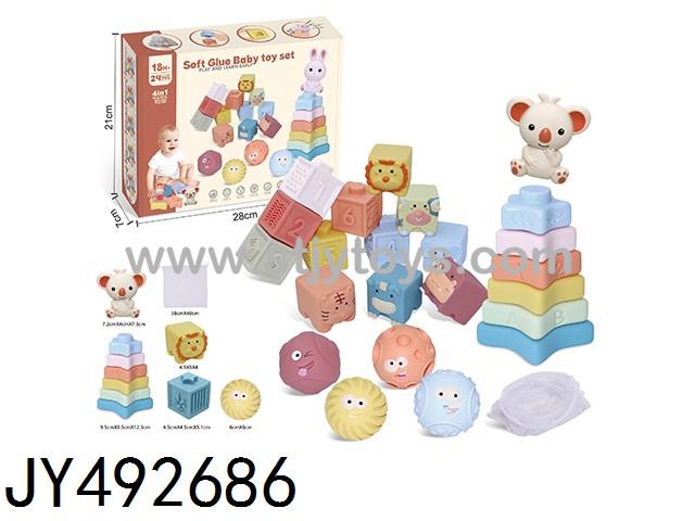 24PCS Soft rubber toy set 4-in-1 (with storage bag)
