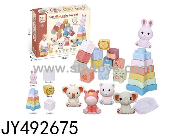 24PCS Soft Rubber toy set 3-in-1 (with storage bag)