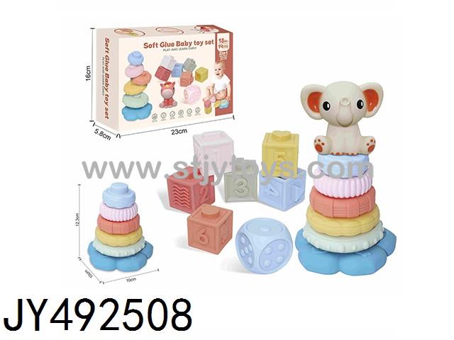 A 14-piece soft rubber Jenga toy set