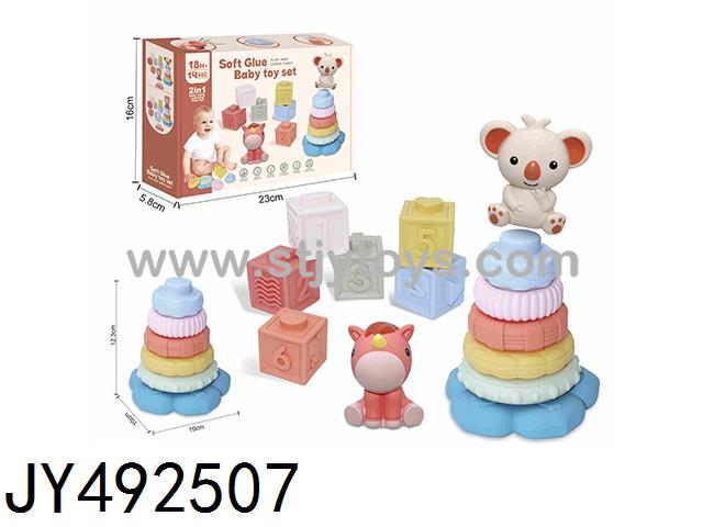 A 14-piece soft rubber Jenga toy set