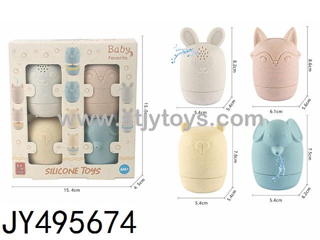 4PCS Wheat straw material silicone water spray assembly animal